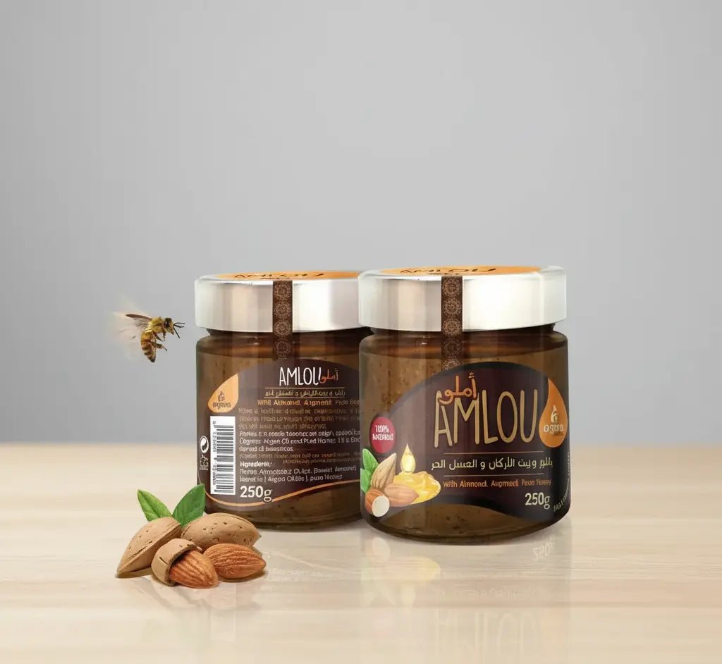 أملو المغربي الطبيعي هو معجون كريمي تقليدي عريق من جنوب المغرب. يُعرف عادةً باسم "نوتيلا المغربية"، لتميزه الكبير بأنه طبيعي 100%، صحي، وعضوي.