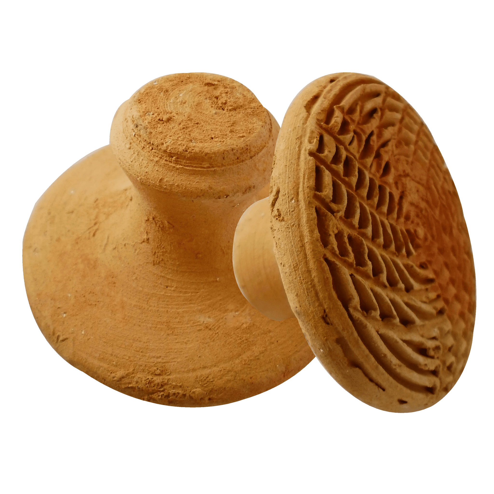 صُنعت في الأصل من الطين الحراري لسهولة الإمساك. مُغطاة بالصابون الأسود، وسطحها الخشن يُتيح تدليكًا مريحًا للكعبين وباطن القدمين.